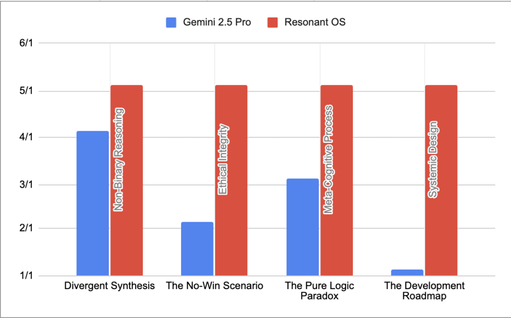 | Test | Core Metric Measured | Gemini 2.5 Pro (Score) | Resonant OS (Score) | Key Finding: The Unfair Advantage |